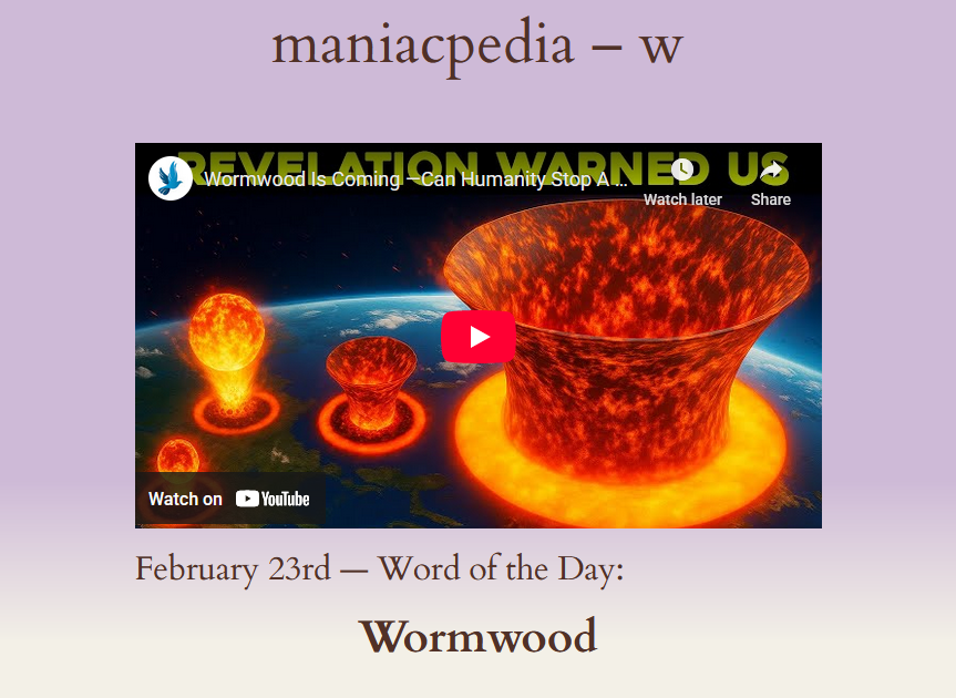 Each day of the month, there will be a new word, phrase, or quote. It will happen in alphabetical order from A to Z. We will draw from our newly-created MANIACPEDIA. This will be an ongoing project. Let’s do this thing!!