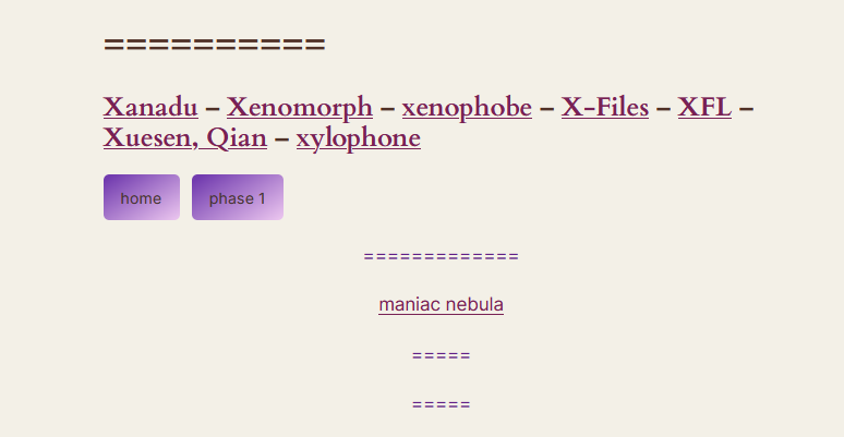 a – b – c –d – e – f – g – h – i – j – k – l – m – n – o – p – q – r – s – t – u – v – w – x – y – z